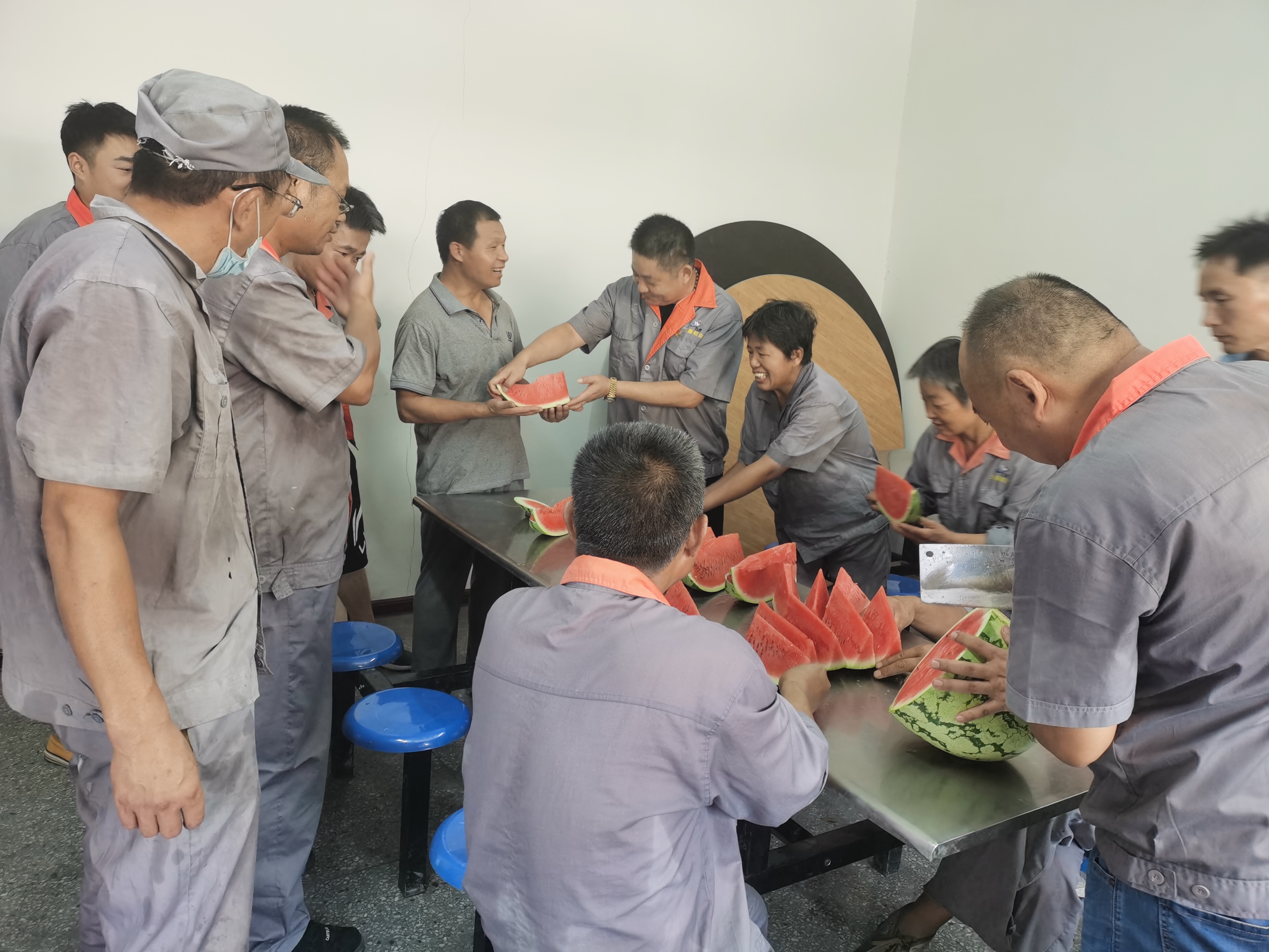 公司總經(jīng)理劉建民、副總經(jīng)理孟建君、牛海燕為不畏高溫酷暑、堅(jiān)守在生產(chǎn)一線的廣大員工送上西瓜、花露水等防暑降溫物品。